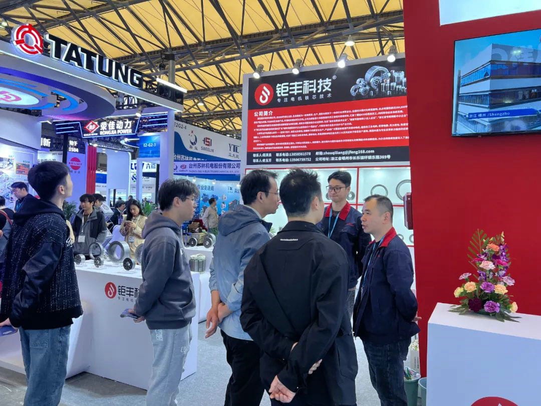 蓝狮在线科技在此次展会上展示了其代表行业最先进技术方向的模内、模后点胶铁芯、自粘结铁芯、高强度超高转速铸铝转子以及超高导电率铸铜转子。这些产品不仅展示了蓝狮在线科技在技术创新方面的雄厚实力,也体现了中国铁芯行业在全球市场中的领先地位。